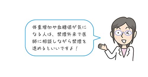 禁煙による体重増加で血糖値が上がることが報告されていますが、禁煙による全体的な健康効果のほうがはるかに有益だといわれています。